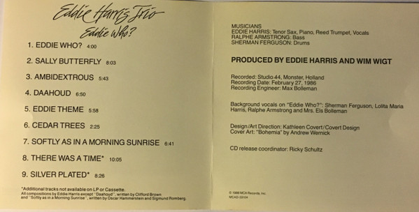 - Piano, Trumpet [Reed], Tenor Saxophone, Vocals, Producer – Eddie Harris