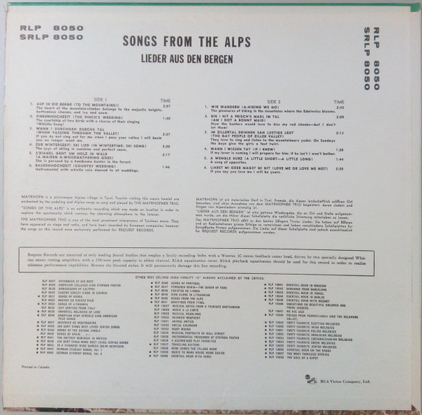The Mayrhofner Trio – Songs From The Alps - Lieder Aus Den Bergen