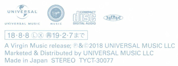 | Лейбл: | Universal Music – TYCT-30077 Virgin Music – TYCT-30077 |