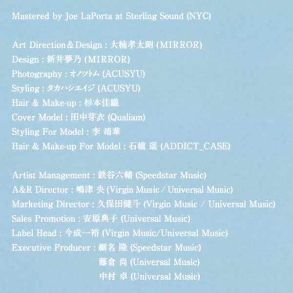Arranged By – She's (2) Arranged By – Rui Momota Recorded By [Vocals] – Masaki Mori (2) Technician [Drum Tuner] – Koji Imamura Technician [Instrumental] – 近藤拓也 Words By, Music By, Producer, Programmed By, Instruments [Other] – Rui Momota |