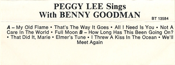 Peggy Lee – Peggy Lee Sings With Benny Goodman