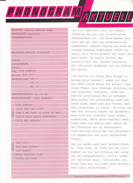 Olivia Newton-John – The Rumour