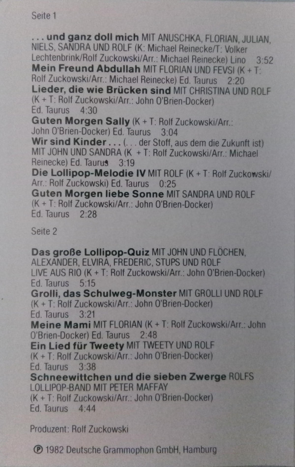 Featuring [mit] – Sandra Keck Featuring [mit] – Florian Keck Featuring [mit] – Julian Maas Featuring [mit] – Niels Peters (2) Featuring [mit] – Anuschka Zuckowski Featuring [mit] – Rolf Zuckowski Lyrics By – Rolf Zuckowski Lyrics By – Volker Lechtenbrink Music By – Michael Reinecke |