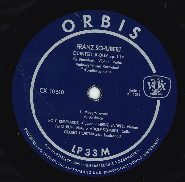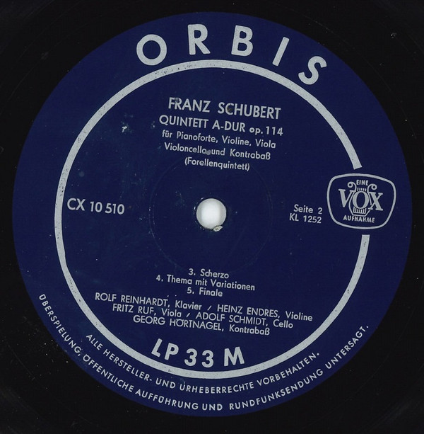 Franz Schubert – Quintett A-Dur Op. 114 Für Pianoforte, Violine, Viola, Violoncello Und Kontrabaß ( Forellenquintett)