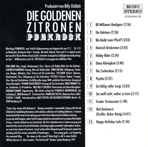 Written-By – Frau Raabe Written-By – Psycho 1 (2) Written-By – Ted Gaier Written-By – Schorsch Kamerun Written-By – Enno Palucca |