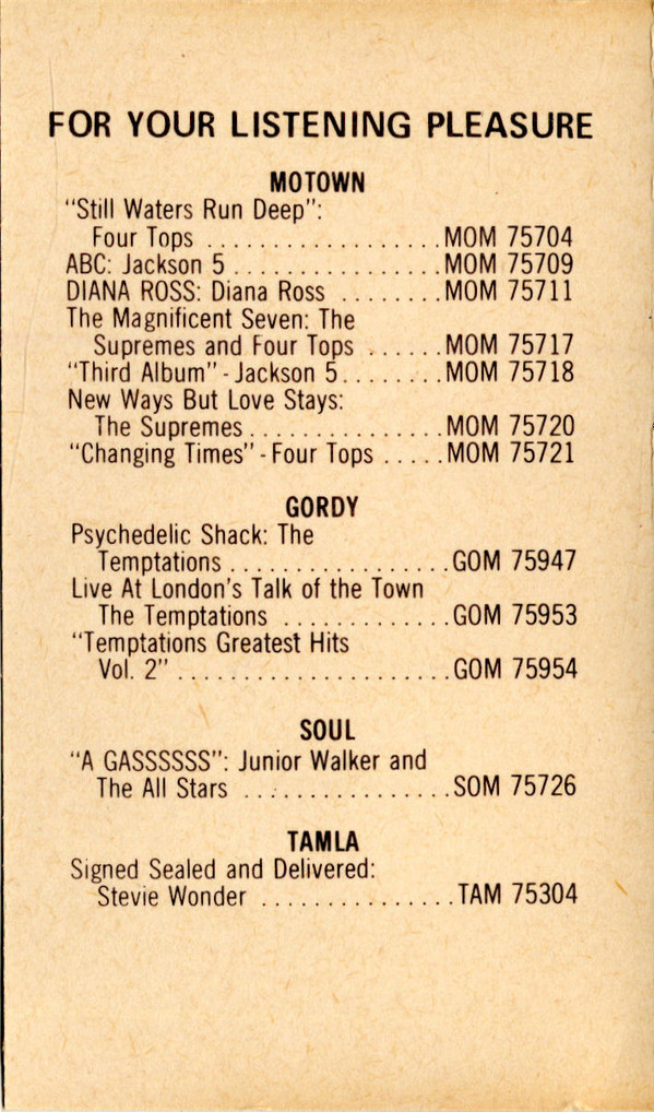 | Лейбл: | Tamla Motown – MOM 75702 Tamla Motown – MS 702 |
