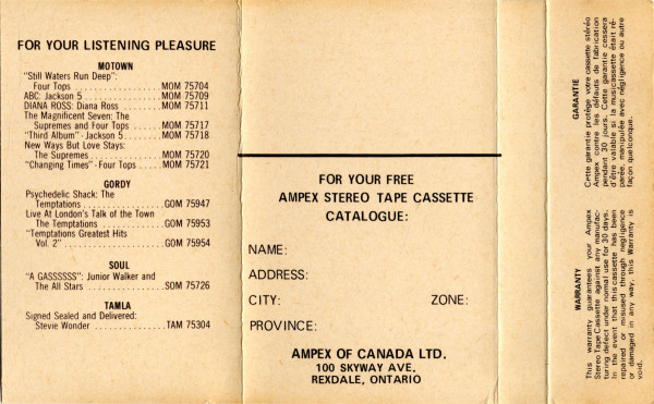 - Manufactured By – Ampex Of Canada Ltd.