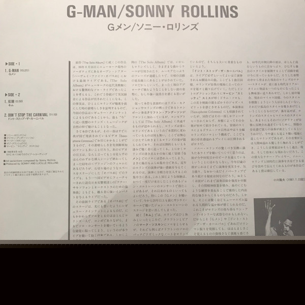 Sonny Rollins Plays G-Man And Other Music For The Soundtrack Of The Robert Mugge Film "Saxophone Colossus"