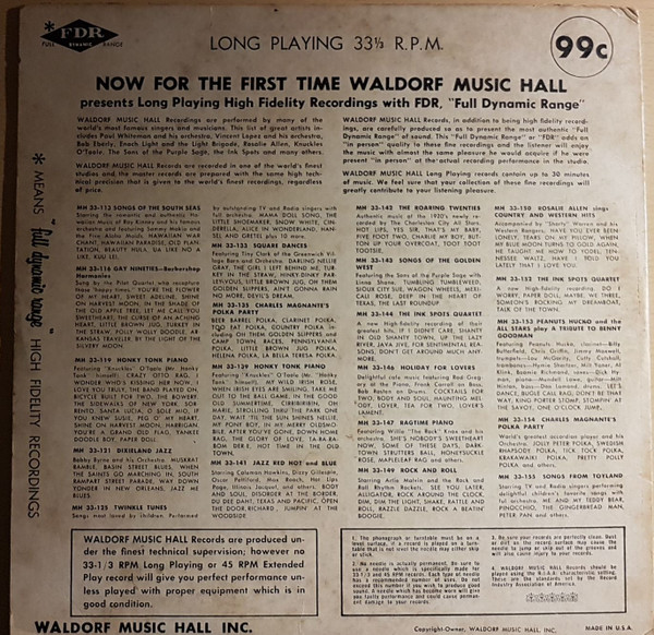 | Лейбл: | Waldorf Music Hall, Inc. – MH33-189 |