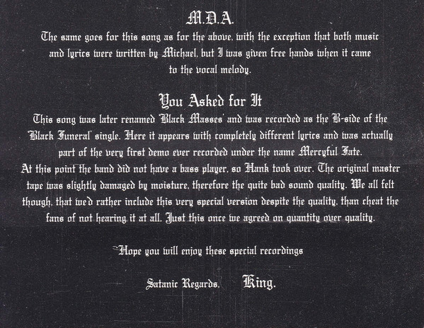 - Vocals – King Diamond (2)