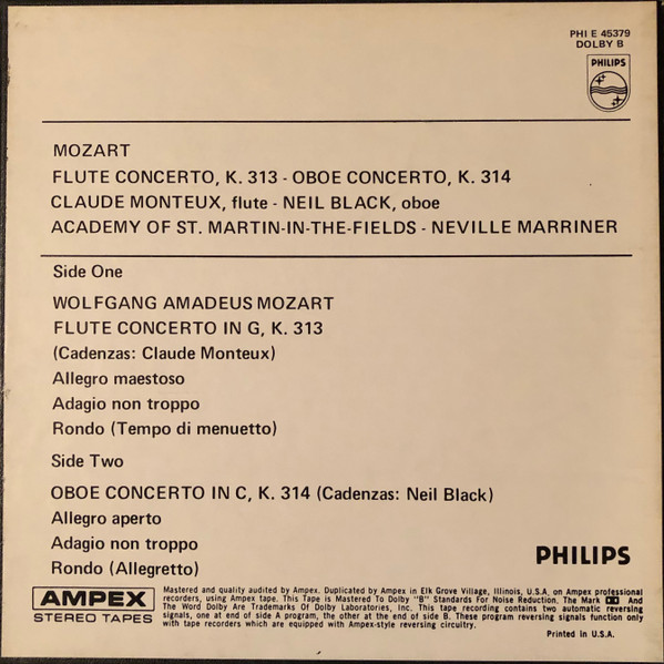 Wolfgang Amadeus Mozart – Flute Concerto, K.313 / Oboe Concerto, K.314