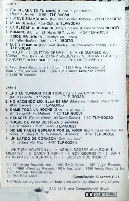 | A2 | Estube Enamorado = I've Been In Love Before | |