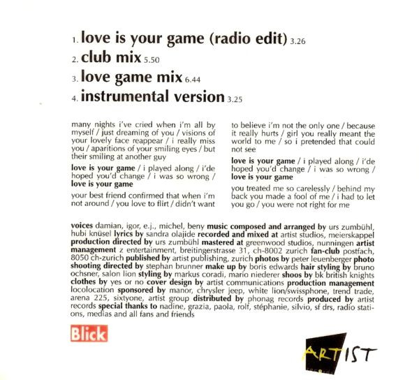 | 2 | Love Is Your Game (Club Mix) |
