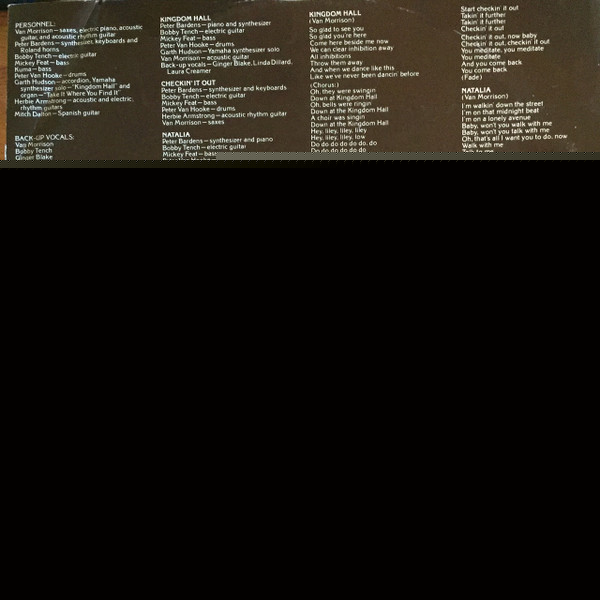 - Backing Vocals [Back-up Vocals] – Van Morrison