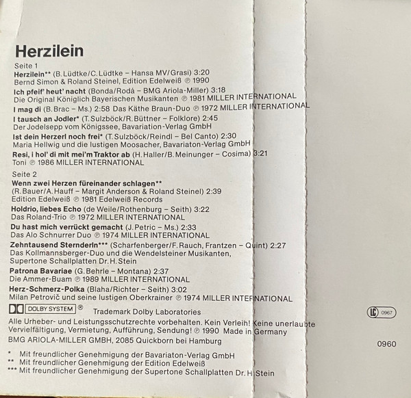- Record Company – BMG Ariola Miller GmbH