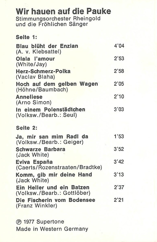 Die Fröhlichen Sänger Vom Rhein – Wir Hauen Auf Die Pauke