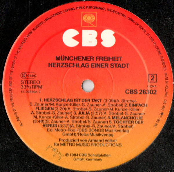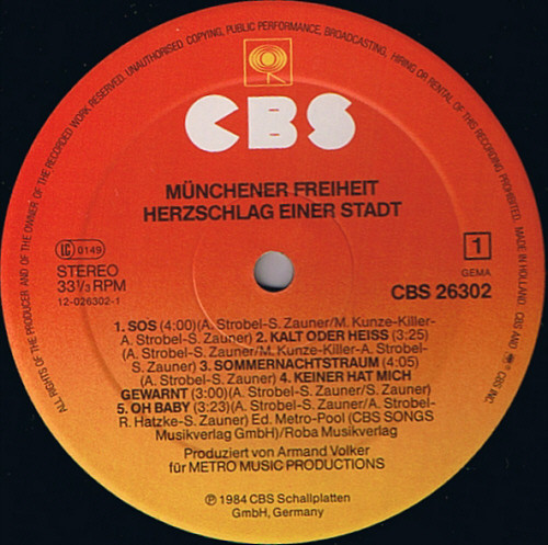 - Phonographic Copyright (p) – CBS Schallplatten GmbH