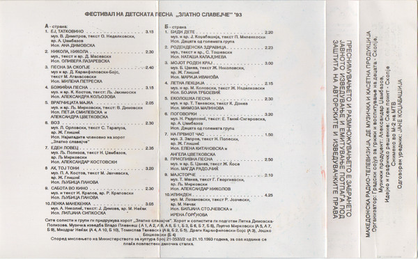 Various – Festival Na Detska Pesna "Zlatno Slavejce" 93