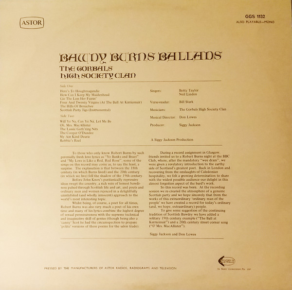 The Gorbals High Society Clan – Bawdy Burns Ballads