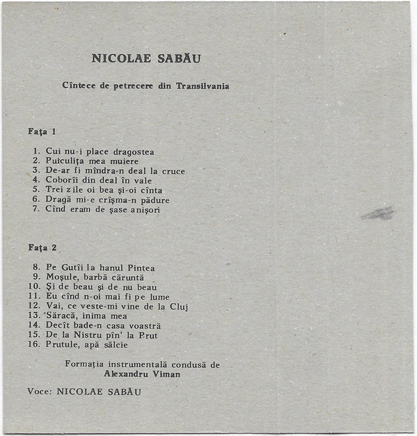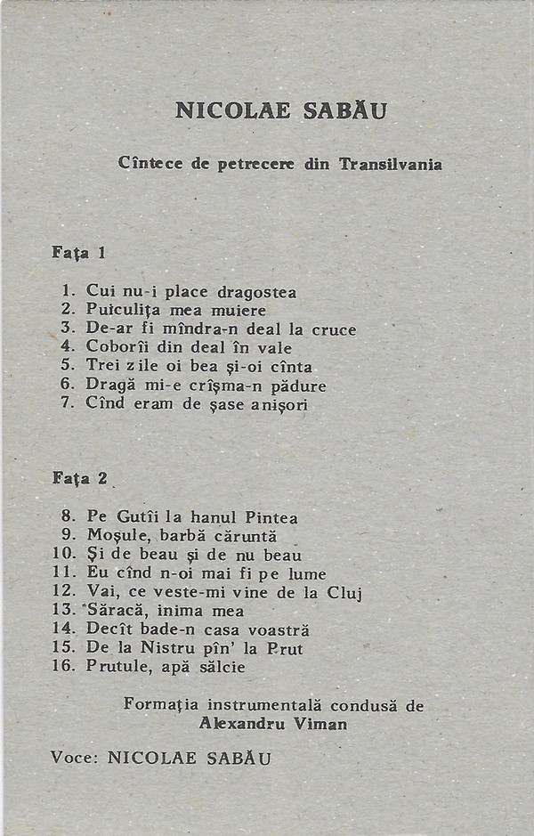 - Vocals – Nicolae Sabău