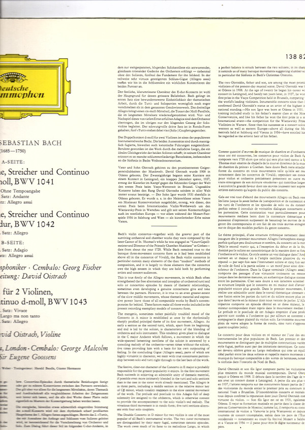 Johann Sebastian Bach – Violinkonzert In A-moll Und E-dur / Konzert Für Zwei Violinen In D-moll