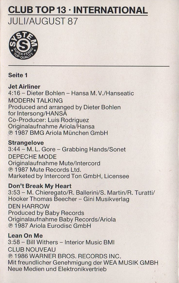 Various – Club Top 13 International 16 Top Hits - Juli/August 1987