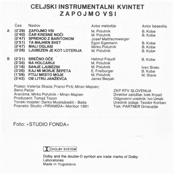 Celjski Instrumentalni Kvintet – Zapojmo Vsi