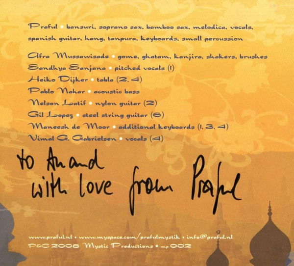 - Songwriter, Bansuri, Soprano Saxophone, Saxophone [Bamboo Sax], Melodica, Vocals, Flamenco Guitar, Hang Drum, Tambura, Keyboards, Percussion, Producer, Recorded By, Layout [Text], Executive-Producer – Praful
