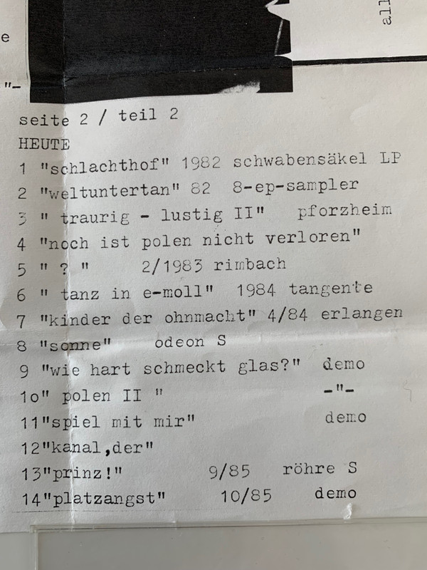 | B14 | Platzangst (10/85 Demo) |