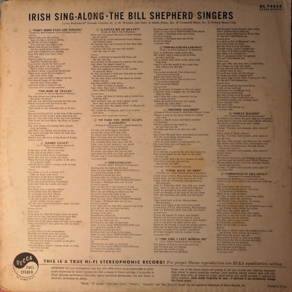 The Bill Shepherd Singers – Irish Sing-Along