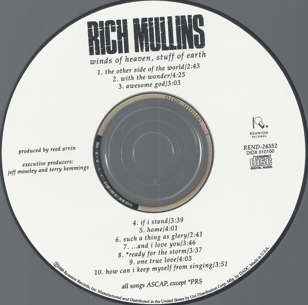 Arranged By [String Arrangements], Keyboards, Synthesizer [Synclavier] – Reed Arvin Backing Vocals [BGVs] – Chris Harris (2) Backing Vocals [BGVs] – Billy Sprague Backing Vocals [BGVs] – Bryan Lenox Backing Vocals [BGVs] – Kim Hill (2) Backing Vocals [BGVs] – Mark Heimermann Backing Vocals [BGVs] – Pam Mark Hall Backing Vocals [BGVs] – Paul Harris (24) Backing Vocals [BGVs] – Allison Gordley Backing Vocals [BGVs] – Pam Ourada Backing Vocals [BGVs] – Susan Coker Backing Vocals [BGVs] – Alan Arnett Backing Vocals [BGVs] – Carmen Minard Backing Vocals [BGVs] – Mark Ratliff Backing Vocals [BGVs] – Melinda Scruggs Backing Vocals [BGVs] – Jennifer Farrar Backing Vocals [BGVs] – Heidi Brown Backing Vocals [BGVs] – Marita Meinerts Backing Vocals [BGVs] – Scott Coupland Backing Vocals [BGVs] – Janis Ellen Broughton Backing Vocals [BGVs] – Lyn Curley Backing Vocals [BGVs] – Cynthia Ratliff Backing Vocals [BGVs] – Lori Lee Loving Backing Vocals [BGVs] – David McCracken Backing Vocals [BGVs] – Chris Rodriguez Bass – Gary Lunn Drums – Keith Edwards Guitar – Jerry McPherson Written-By – Rich Mullins |