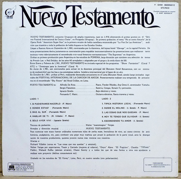 - Manufactured By – "El Virrey" Industrias Musicales S.A.