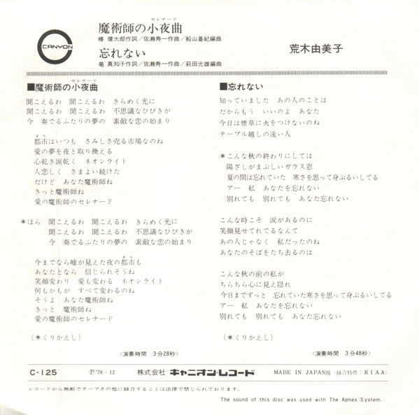 荒木由美子 – 魔術師の小夜曲