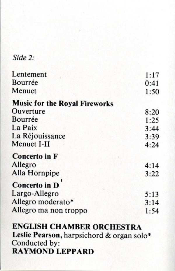 Georg Friedrich Händel – Water Music / Royal Fireworks Music (2 Concertos)