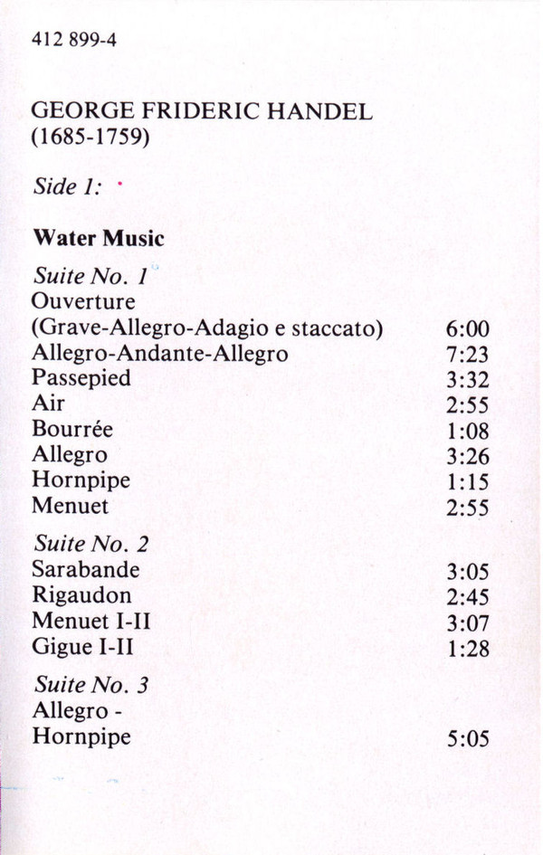 Suite De The Water Music /  Minuetto De The Faithful Shepherd / Suite De The Royal Fireworks Music / Largo De Jerjes - 13184462 Suite De The Water Music / Minuetto De The Faithful Shepherd / Suite De The Royal Fireworks Music / Largo De Jerjes