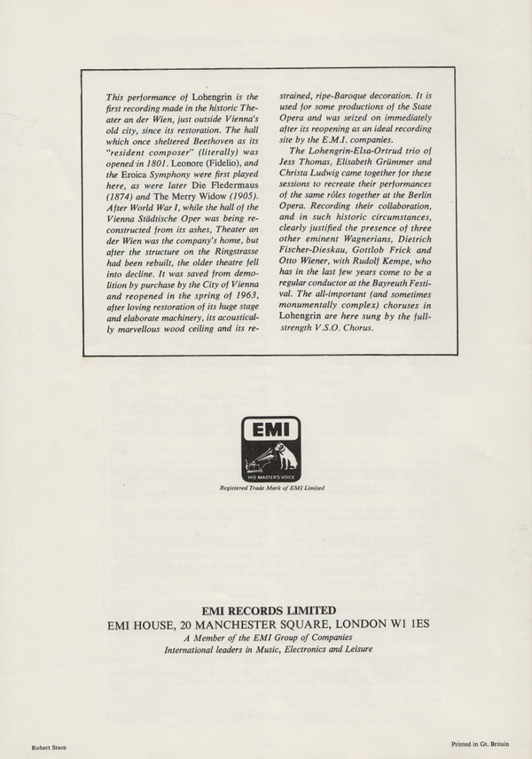 - Soprano Vocals [Elsa Of Brabant] – Elisabeth Grümmer