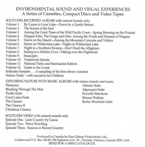 - Recorded By [Nature Sounds Recorded Digitally On PCM / DAT System By] – Dan Gibson