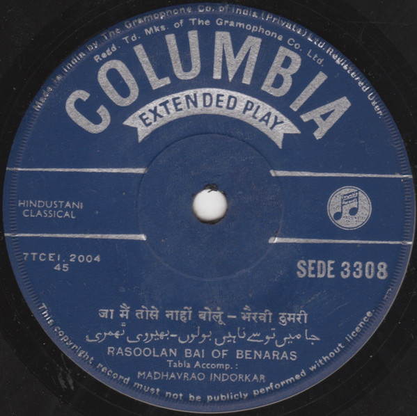 Rasoolan Bai – तरसत जियरा हमार - कजरी / जा मैं तोसे नाहीं बोलूं - भैरवी ठुमरी