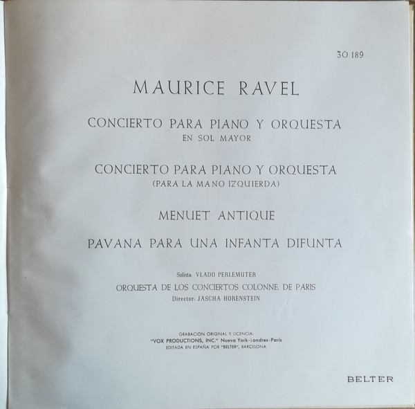 Maurice Ravel – Concierto Para Piano Y Orquesta En Sol Mayor / Concierto Para La Mano Izquierda / Menuet Antique / Pavana Para Una Infanta Difunta