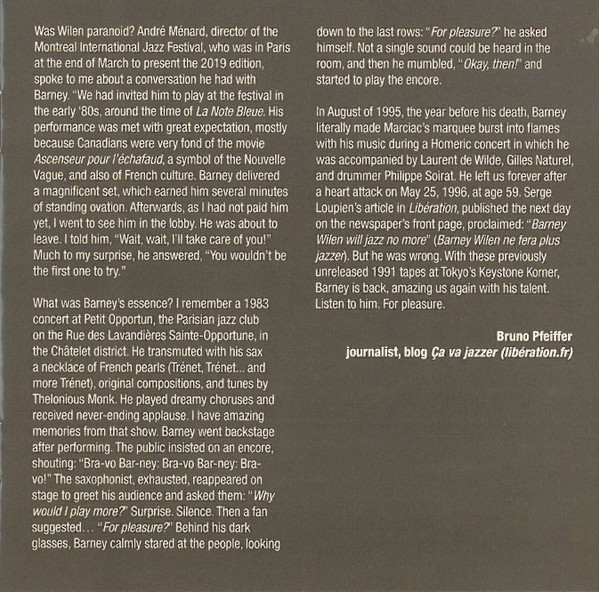 - Tenor Saxophone, Soprano Saxophone – Barney Wilen