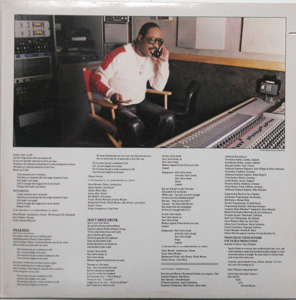 Stevie Wonder Backing Vocals – Larry Gittens Backing Vocals – Abdoulaye Soumare Backing Vocals – Timothy Hardaway Backing Vocals – Dennis Morrison Backing Vocals – James Allen Backing Vocals – Brad Buxer Backing Vocals – Bruce Connole Synthesizer, Drums, Vocals, Backing Vocals – Stevie Wonder |