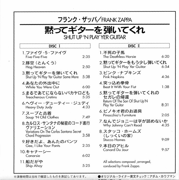 Frank Zappa – Shut Up 'n Play Yer Guitar