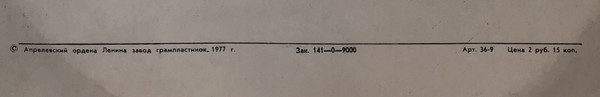 - Manufactured By – Апрелевский Завод Грампластинок