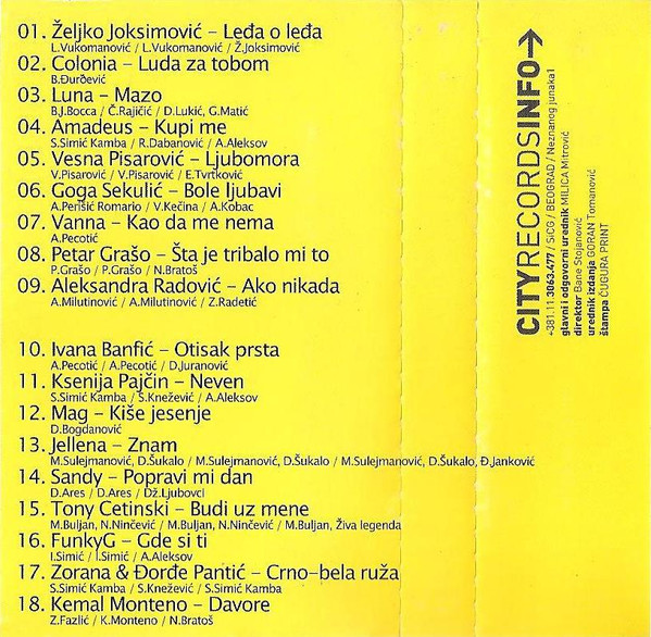 Tony Cetinski Music By, Lyrics By, Arranged By – Nenad Ninčević Music By, Lyrics By, Arranged By – Miro Buljan |