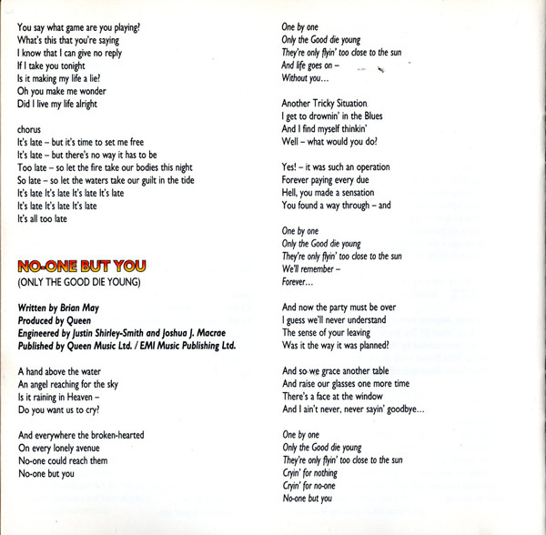| 18 | No-One But You (Only The Good Die Young) |