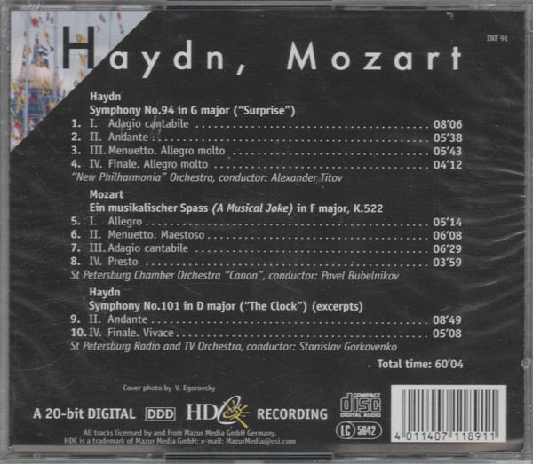 Wolfgang Amadeus Mozart – Symphony No. 94 In G Major ("Surprise"), Ein Musikalischer Spass (A Musical Joke) In F Major, K. 522, Symphony No. 101 In D Major ("The Clock") (excerpts)