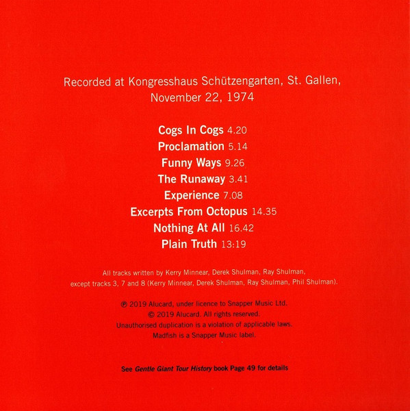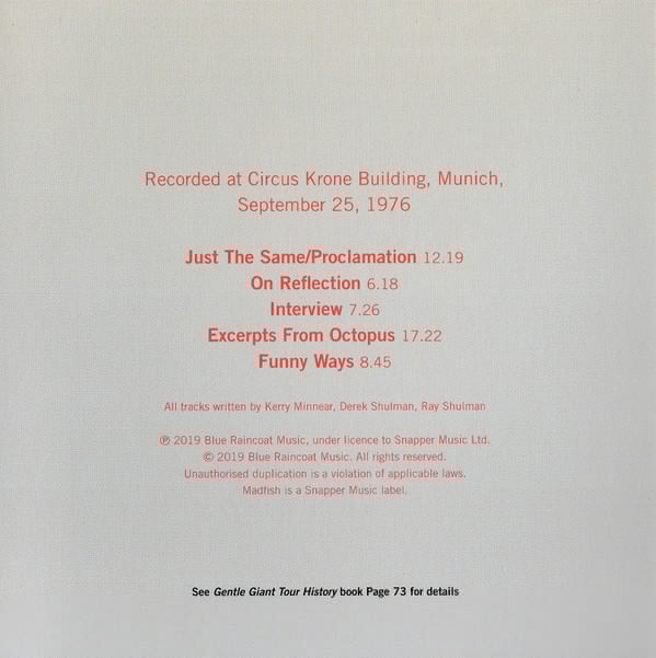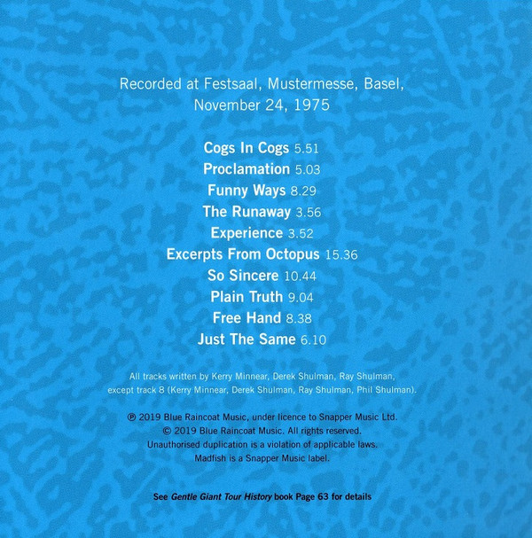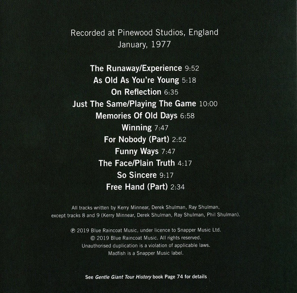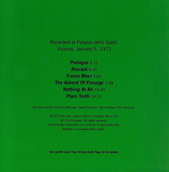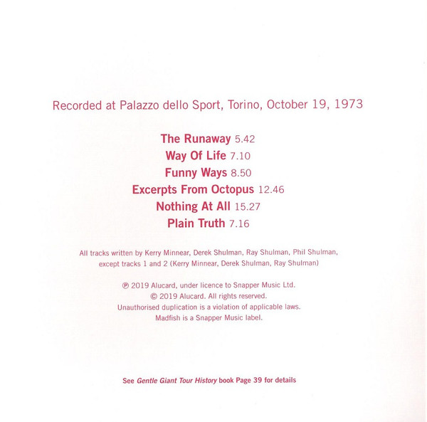 - Matrix / Runout Disc 1 - Gentle Giant: AVIA00207021