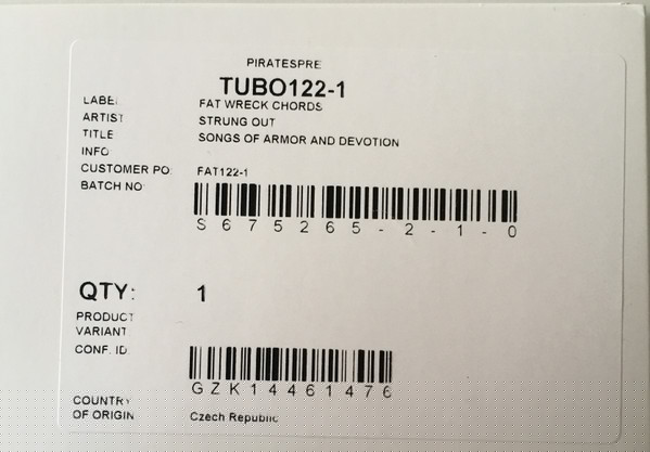 - Matrix / Runout Side A runout, stamped: 190947E1/A PIRATES PRESS - FAT122-1 A