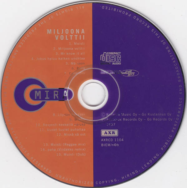 Mira (9) Arranged By [Sov.] – Markku Nikkilä Arranged By [Sov.] – Jouni Hillberg Arranged By [Sov.] – Jukka Hillberg Composed By [Säv.], Lyrics By [San.] – Timo Allinniemi |