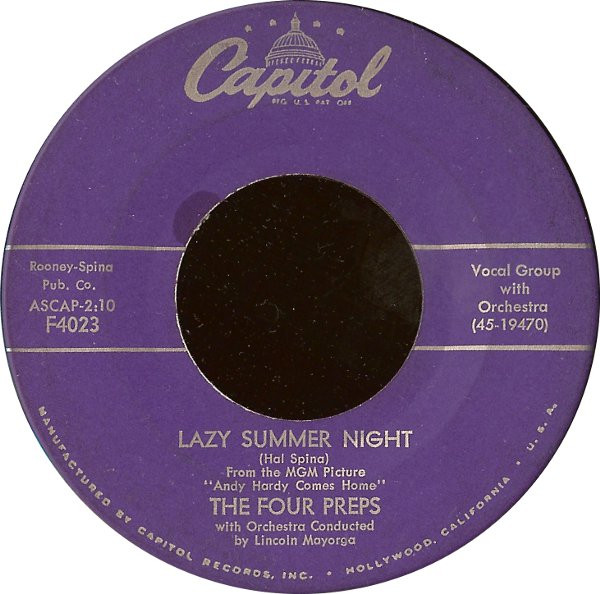 The Four Preps – Summertime Lies / Lazy Summer Night